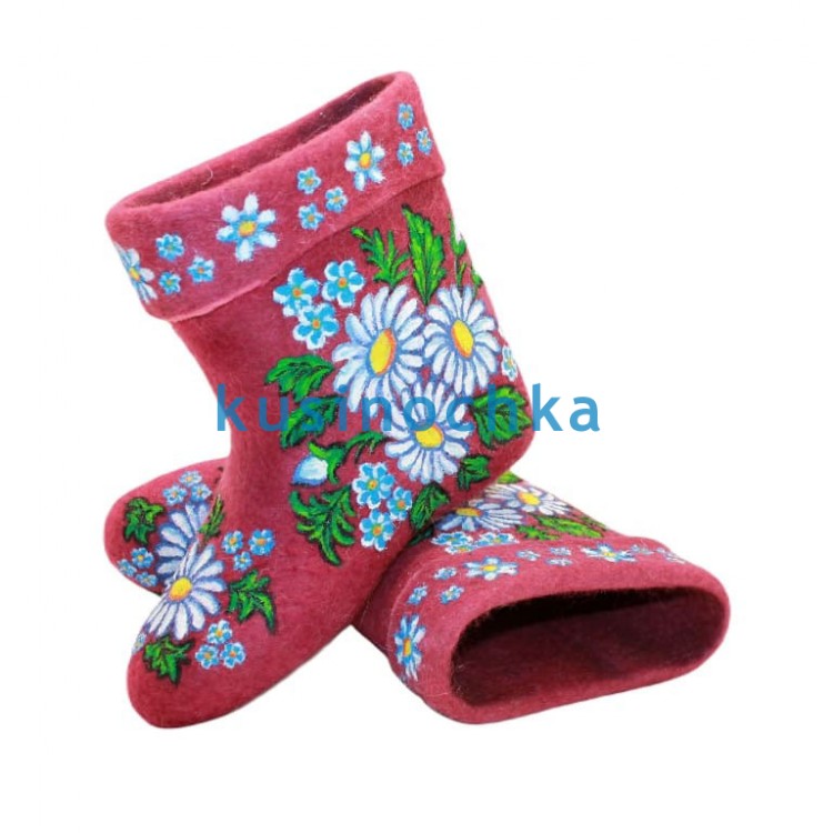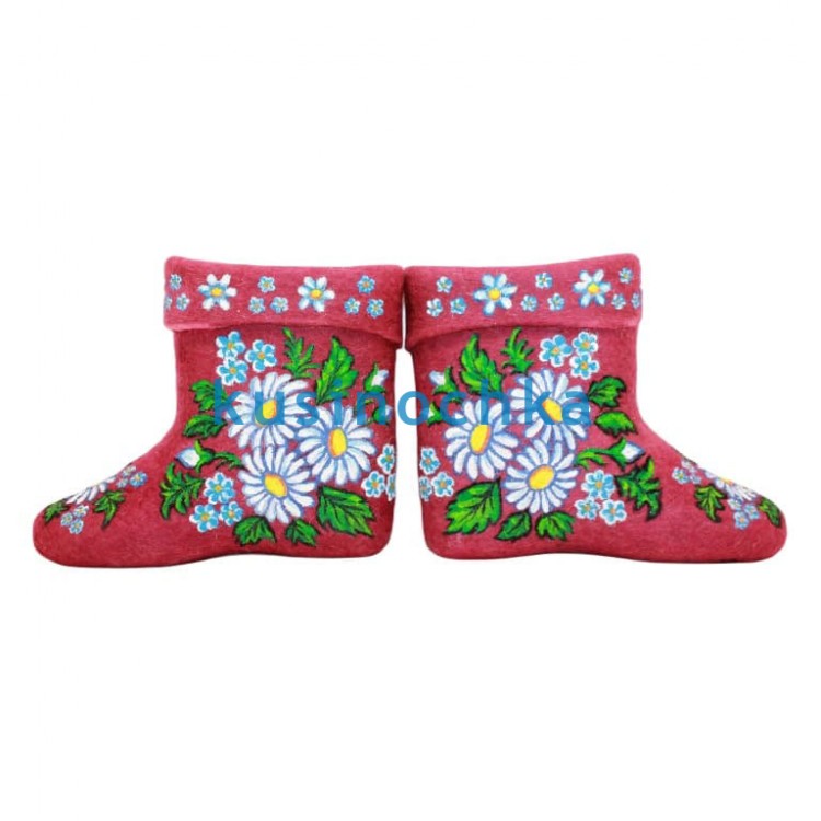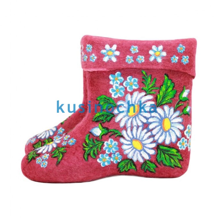 Полуваленки ручной валки розового цвета, с декоративным рисунком, выполненным золотой акриловой краской и небольшими вкраплениями чёрного. Золото добавляет изысканности, чёрный — контраста и глубины, розовый — мягкости без излишней сладости.